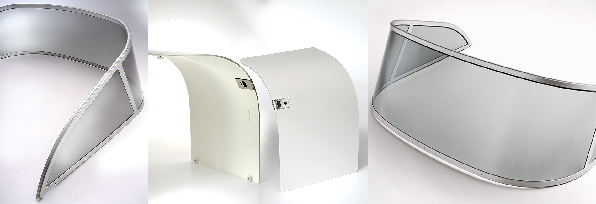 Le superfici trasparenti sono realizzate in PMMA (plexiglas) in vari colori e spessori. Non solo parabrezza, ma anche porte scorrevoli con guide, finestre ed oblò.
